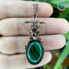 Malachite cabochon wire wrapped with 99,9% oxidized-antiqued copper.
