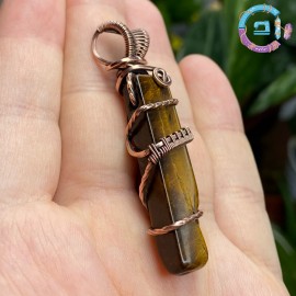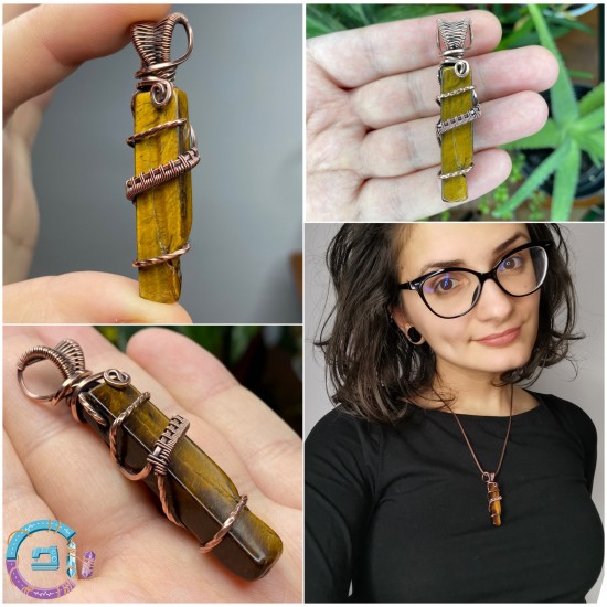 Tiger's eye wire wrapped with 99,9% oxidized-antiqued copper.