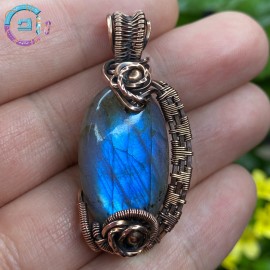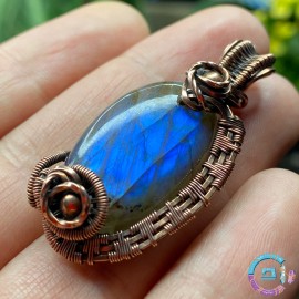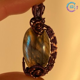 Labradorite cabochon wire wrapped with 99,9% oxidized-antiqued copper.