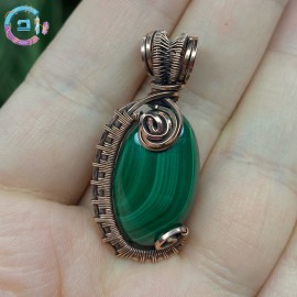 Malachite cabochon wire wrapped with 99,9% oxidized-antiqued copper.