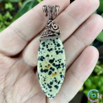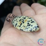 Dalmatian jasper cabochon wire wrapped with 99,9% oxidized-antiqued copper.