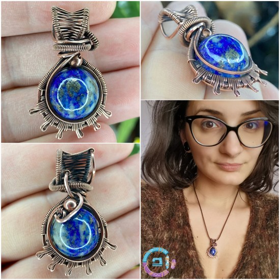 Lapis lazuli sphere wire wrapped with 99,9% oxidized-antiqued copper.