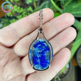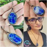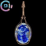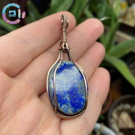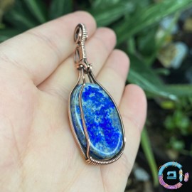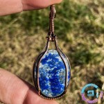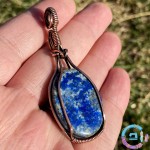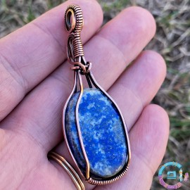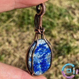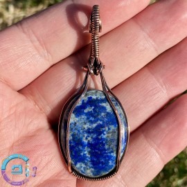 Lapis lazuli cabochon wire wrapped with 99,9% oxidized-antiqued copper.