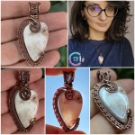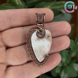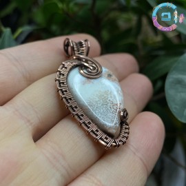 Scolecite cabochon wire wrapped with 99,9% oxidized-antiqued copper.