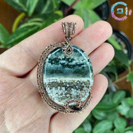 Ocean jasper cabochon wire wrapped with 99,9% oxidized-antiqued copper.