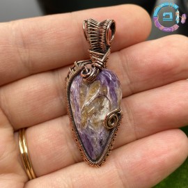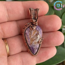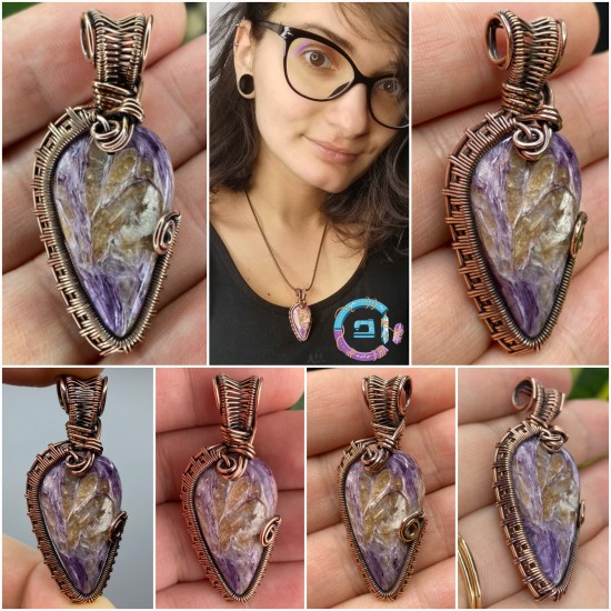Charoite cabochon wire wrapped with 99,9% oxidized-antiqued copper.