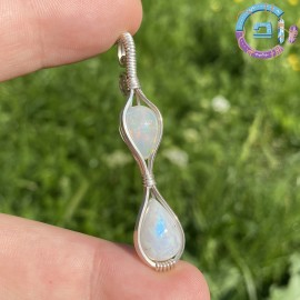 Ethiopian opal cabochon and rainbow moonstone cabochon wire wrapped with 925 silver wire.