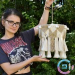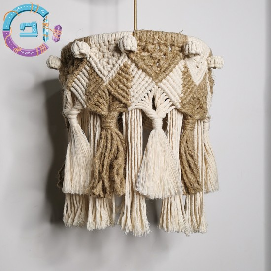 Chandelier, lamp shade with tassels, made with macrame techniques.