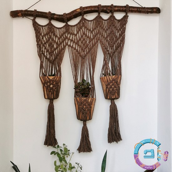Triple plant hanger for walls, made with macrame techniques.