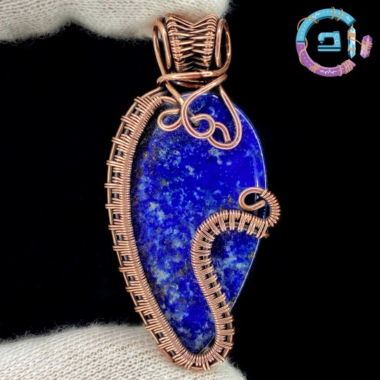 Lapis lazuli cabochon wire wrapped with 99,9% oxidized-antiqued copper.