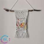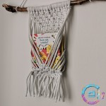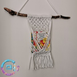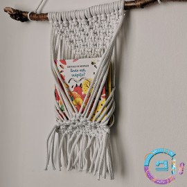 Suport de cărți sau reviste, pentru perete, realizat prin tehnica macrame.