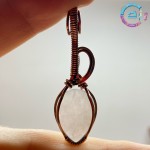 Caboșon cuarț roz înfășurat în sârmă din cupru 99,9%, oxidată-antichizată.