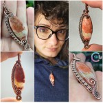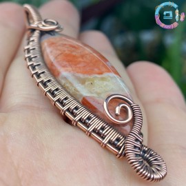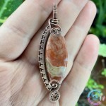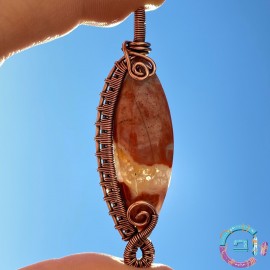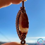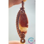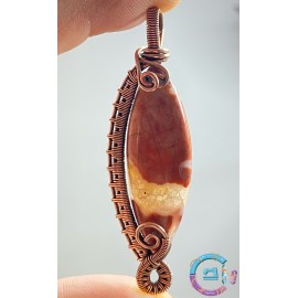 Caboșon jasp breciat înfășurat în sârmă din cupru 99,9%, oxidată-antichizată.