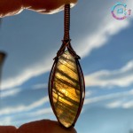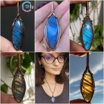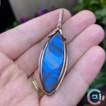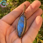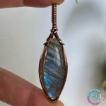Caboșon labradorit albastru înfășurat în sârmă din cupru 99,9%, oxidată-antichizată.
