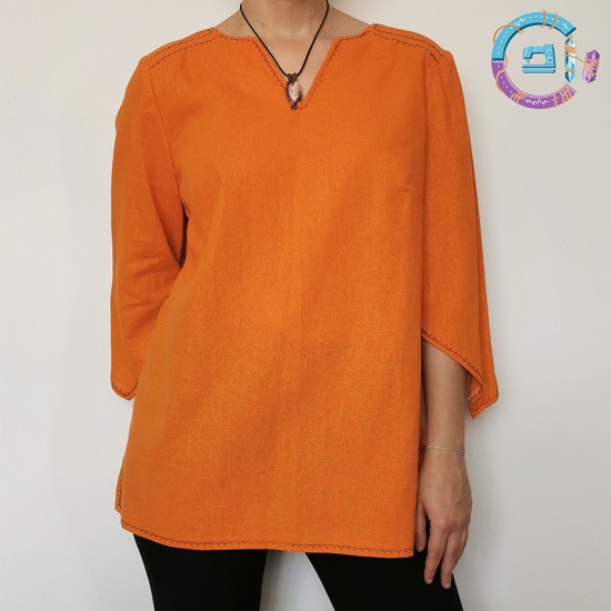 Tunică cu mânecă 3/4 în ”V”, decolteu în "V" și cusătură decorativă.